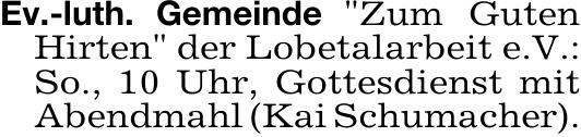 Erscheinungsdatum: Anzeige vom 10.1.2026 in der Rubrik "Ev. luth. Landeskirche"