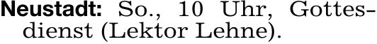 Neustadt: So., 10 Uhr, Gottes-
