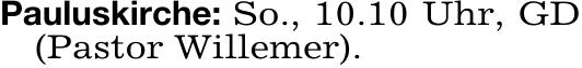 Pauluskirche: So., 10.10 Uhr, GD