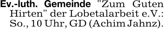 Ev.-luth. Gemeinde "Zum GutenHirten" der Lobetalarbeit e. V.: