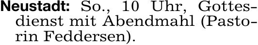 Neustadt: So., 10 Uhr, Gottes-