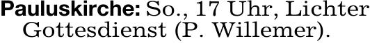 Pauluskirche: So., 17 Uhr, Lichter