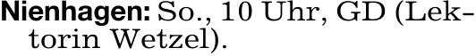 Nienhagen: So., 10 Uhr, GD (Lek-