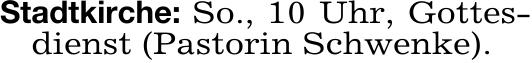 Stadtkirche: So., 10 Uhr, Gottes-