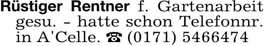 Rüstiger Rentner f. Gartenarbeitgesu. hatte schon Telefonnr.