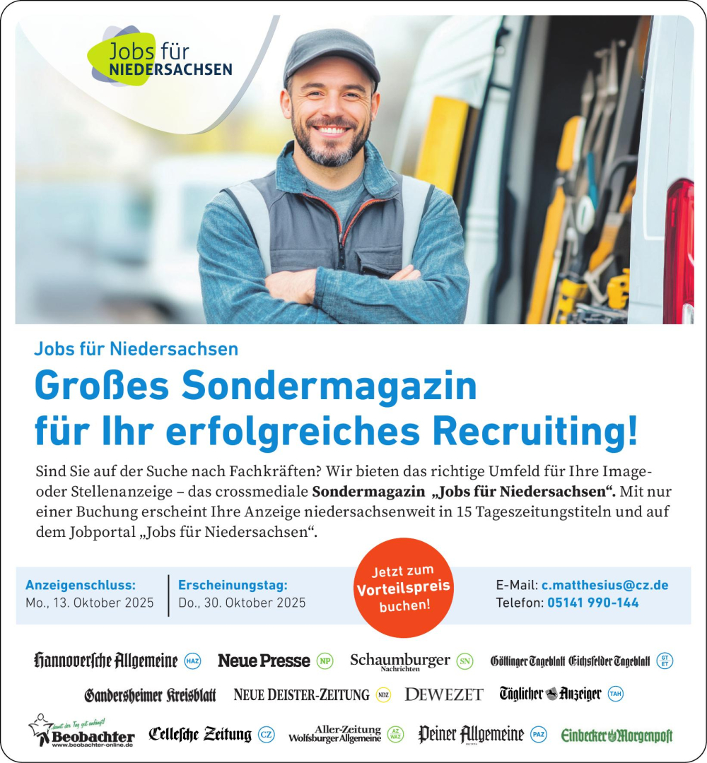 oder Stellenanzeige - das crossmediale Sondermagazin „Jobs für Niedersachsen“. Mit nur
