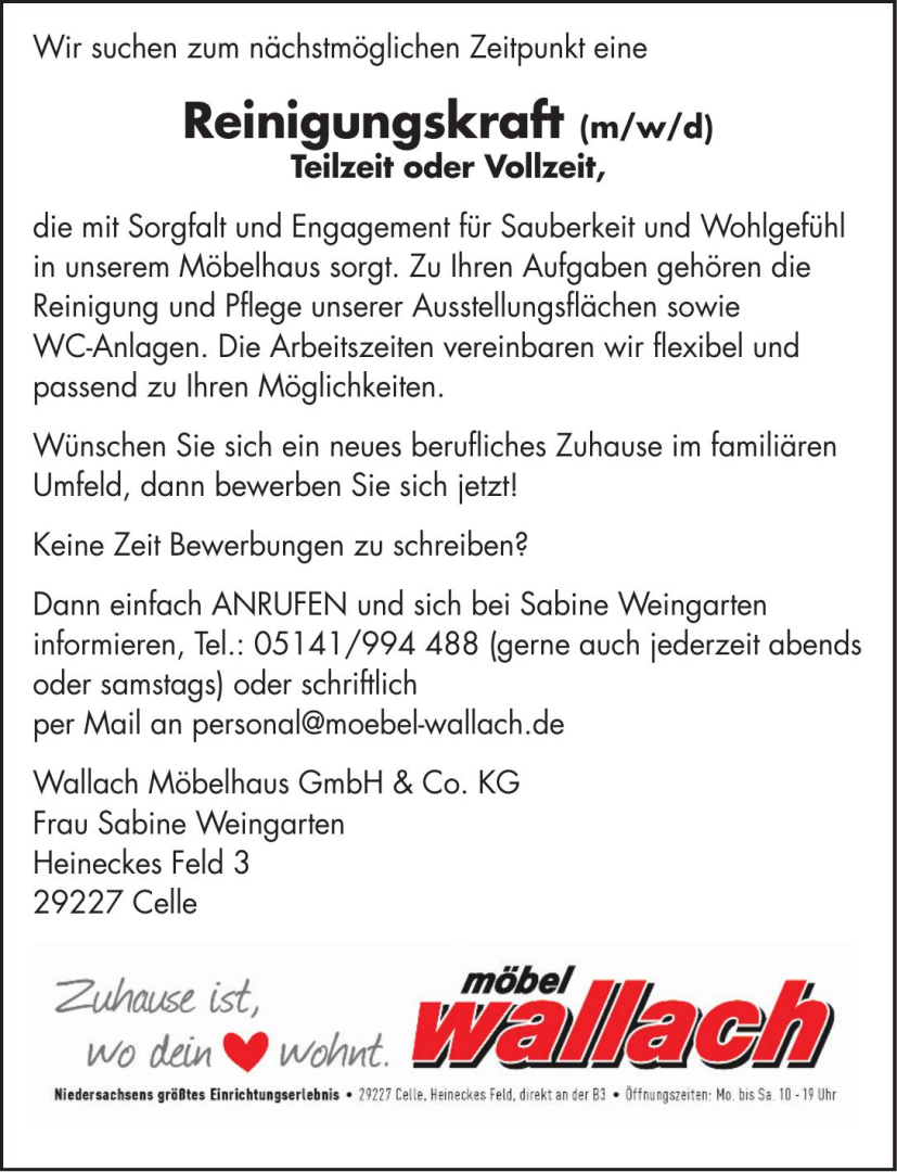 per Mail an personal@moebel-wallach.de