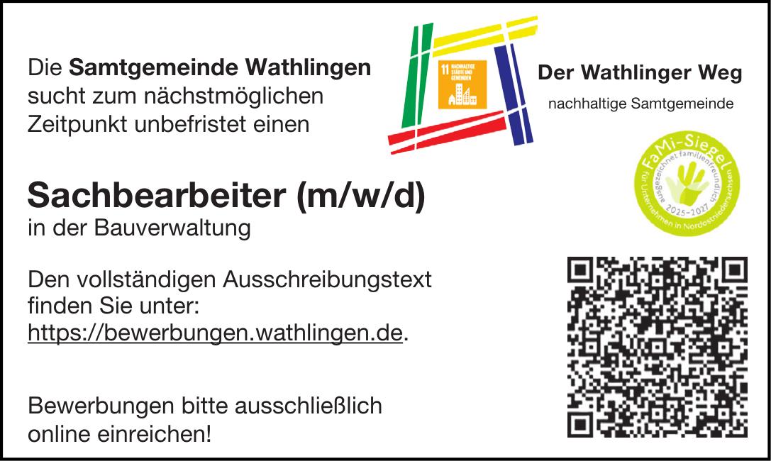 Die Samtgemeinde Wathlingensucht zum nächstmöglichen