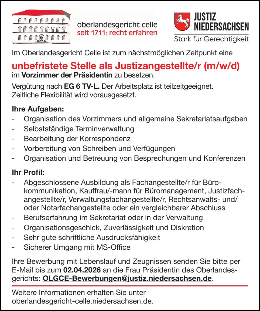 gerichts: OLGCE-Bewerbungen@justiz.niedersachsen.de.