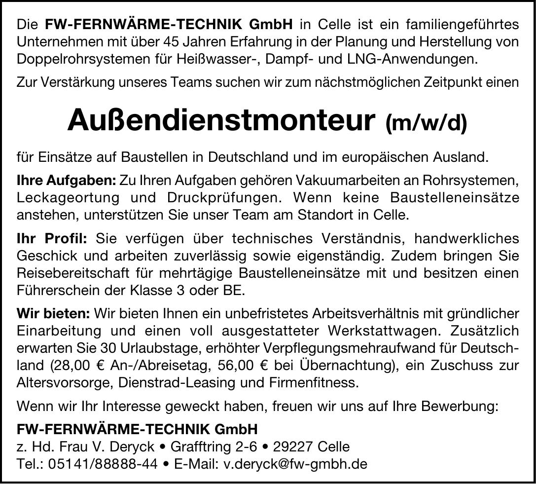 Die FW-FERNWÄRME-TECHNIK GmbH in Celle ist ein familiengeführtesUnternehmen mit über 45 Jahren Erfahrung in der Planung und Herstellung von