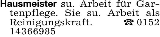 Hausmeister su. Arbeit für Gar-
