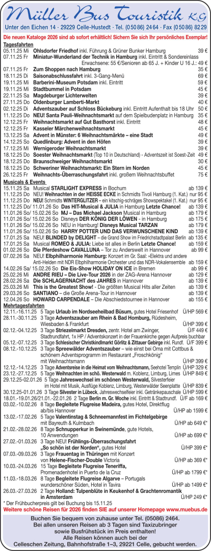 Erscheinungsdatum: Anzeige vom 1.11.2025 in der Rubrik "Veranstaltungen"