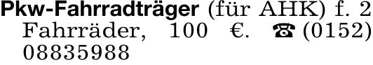 Pkw-Fahrradträger (für AHK) f. 2Fahrräder, 100 €. ☎ (0152)