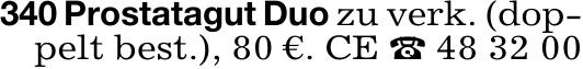 340 Prostatagut Duo zu verk. (dop-pelt best.), 80 €. CE & 48 32 00