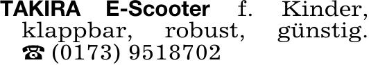 TAKIRA E-Scooter f. Kinder,klappbar, robust, günstig.