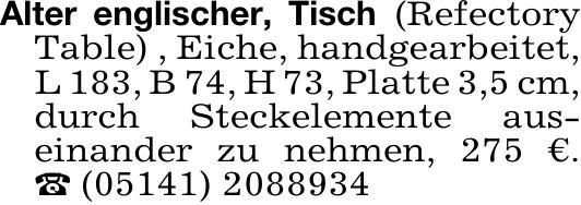 Alter englischer, Tisch (RefectoryTable), Eiche, handgearbeitet,