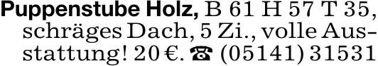 Puppenstube Holz, B 61 H 57 T 35,schräges Dach, 5 Zi., volle Aus-
