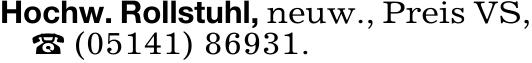 Hochw. Rollstuhl, neuw., Preis VS,