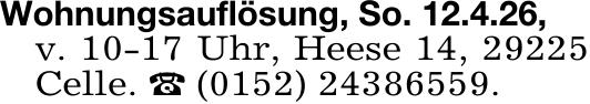 Erscheinungsdatum: Anzeige vom 10.4.2026 in der Rubrik "Verkäufe"